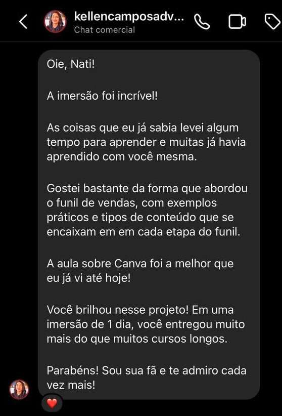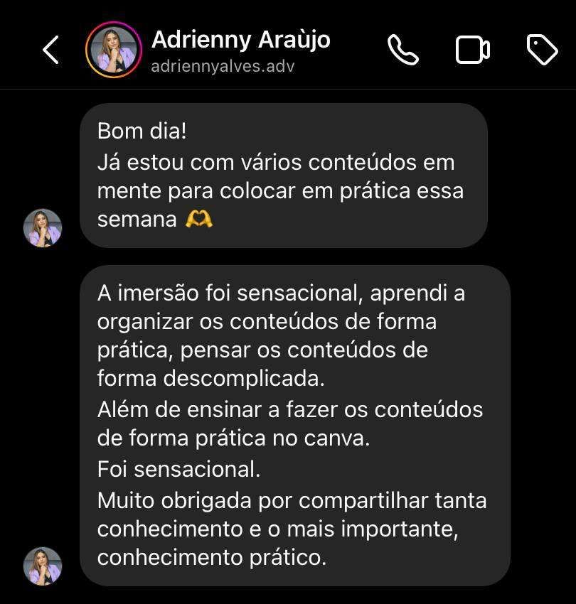 Líder em posicionamento digital para advogadas e estrategista digital, já auxiliei mais de 250 de profissionais a se posicionarem no digital e prospectarem mais com a sua experiência na advocacia.